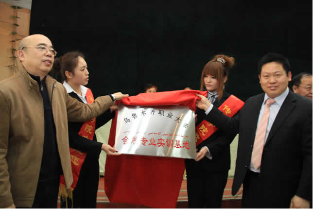 隨后,《烏魯木齊職業大學會展專業實訓基地》揭牌儀式、會展1011班命名儀式舉行,至此,會展1011班正式更名“振威會展班”,新疆振威張學林總經理給“振威會展班”的18名學生贈送了工裝;職業大學黨繼農校長給振威展覽集團張學山總經理、新疆振威張學林總經理頒發了“客座教授”的聘書。較終,在“振威會展班”18名學生的莊嚴誓詞中,儀式緩緩落幕。
