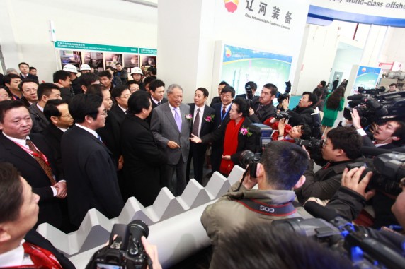 下圖為成思危主席等貴賓在cippe2012石油展上參觀,成為媒體拍攝焦點。