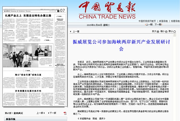 【中國貿易報報道】振威展覽公司參加海峽兩岸新興產業發展研討會
