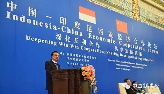 2015年3月27日,國務(wù)院總理李克強(qiáng)與印尼總統(tǒng)佐科在北京人民大會(huì)堂金色大廳共同出席主題為“深化互利合作,共享發(fā)展機(jī)遇”的中國-印尼經(jīng)濟(jì)合作論壇并發(fā)表致辭。