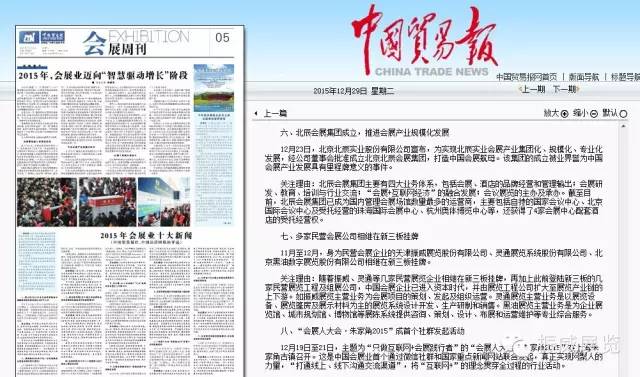由中國貿(mào)易報社、中國經(jīng)濟網(wǎng)聯(lián)袂評選的“2015年會展業(yè)十大新聞”中指出,2015年是中國會展業(yè)極具里程碑意義的一年。先是國務院公布了《關(guān)于進一步促進展覽業(yè)改革發(fā)展的若干意見》國發(fā)〔2015〕15號文,從頂層戰(zhàn)略對展覽業(yè)改革發(fā)展作出全面部署。