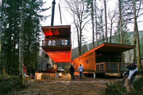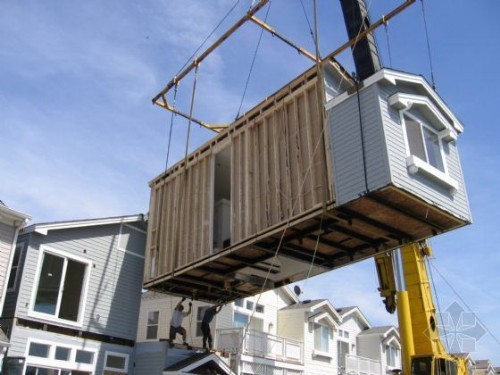 以集裝箱為基本模塊,采用制造模式,在工廠內以流水線制造完成各模塊的結構建造和內部裝修后再運輸到工程現場,按不同的用途與功能快速組合成風格各異的房屋建筑。