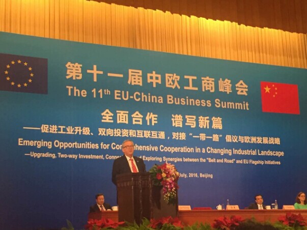 第十一屆中歐工商峰會由中國商務部、歐盟委員會主辦,中國國際貿易促進委員會、中國歐盟商會等機構聯合承辦。大會主題為:全面合作譜新篇——促進工業升級、雙向投資和互聯互通,對接“一帶一路”倡議與歐洲發展戰略。會議由中國貿促會會長姜增偉主持,中國歐盟商會主席伍德克、中國商務部部長高虎城、歐盟貿易委員馬爾姆斯特倫分別致辭,歐盟委員會主席容克發表演講。國家發改委主任徐紹史、工業和信息化部部長苗圩等相關部委領導到會。同時,由中國機械工業集團有限公司董事長任洪斌,歐洲雇主協會主席、意大利埃尼石油集團董事長馬切卡利亞,中國建筑材料集團有限公司董事長宋志平,羅蘭貝格國際管理咨詢有限公司首席執行官常博逸,TCL集團股份有限公司總裁薄連明,振威展覽股份董事長張學山等企業家組成的“豪華”中外參會陣容,亦頗受外界矚目。會上,與會人員圍繞“政策溝通——共同迎接新工業革命”、“資金融通——促進雙向融資”和“設施聯通——深化交通數字合作”三個分組議題展開了深入探討。