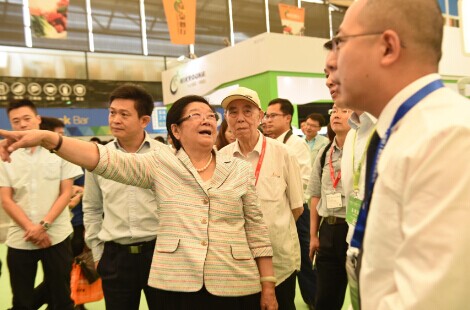 十屆全國人大常委會副委員長顧秀蓮(左)在振威展覽股份董事長張學(xué)山(右)陪同下參觀展會