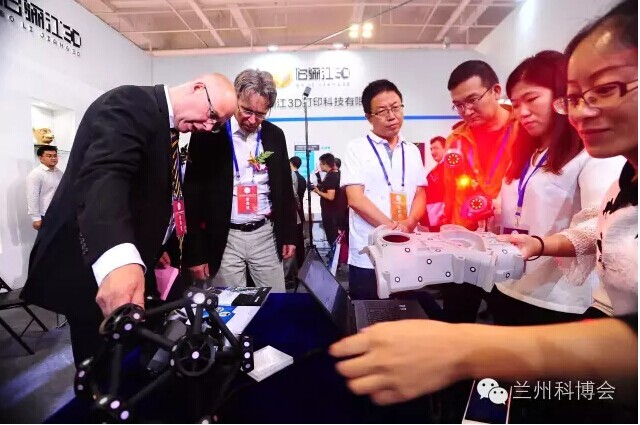 外國專家在伯驪江3D打印機(jī)展區(qū)調(diào)研3D打印效果
