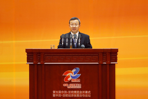 中國商務部副部長王受文為亞歐博覽會開幕式暨中國—亞歐經濟發展合作論壇致辭