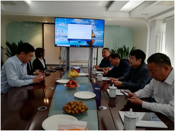 路部長一行在會議室聽取張學(xué)山董事長介紹并進(jìn)行交流
