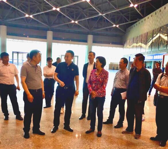 振威展覽股份副總裁賈鵬洲(左二)陪同太原市委副書記李新春(左一)、太原市體育局局長高波(右一)、太原市貿促會會長郭海燕(右二)展前蒞臨指導