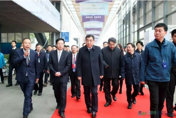 第十二屆全國政協副主席馬培華(中),湖南省委常委、長沙市委書記胡衡華(左二),中國電子信息產業集團有限公司黨組書記、董事長芮曉武(二排右二)湖南省政協副主席,省科技廳廳長賴明勇(二排右一)在振威展覽股份常務副總裁鄧小輝(左一)陪同下參觀展會