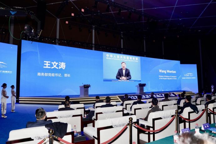 王文濤在致辭中說,今年以來,商務部立足自身職能,在提升貿易數字化水平、推動航運業綠色發展、提升航運貿易便利化水平等方面推出了一系列務實有力舉措。習近平主席在第三屆“一帶一路”國際合作高峰論壇宣布了中國支持高質量共建“一帶一路”的八項行動,提出將積極推進“絲路海運”港航貿一體化發展。我們要認真貫徹落實黨中央、國務院決策部署,持續推進高水平對外開放,推動貨物貿易優化升級,創新服務貿易發展機制,提升貿易投資自由化便利化水平。要積極支持天津建設北方國際航運樞紐,支持天津自貿試驗區開展船舶等保稅維修,推動產業鏈創新發展。