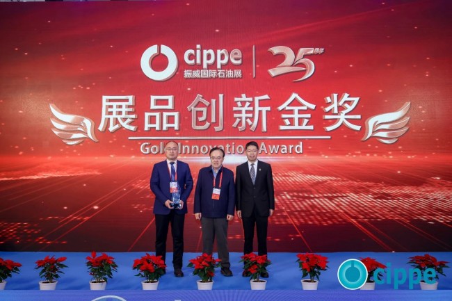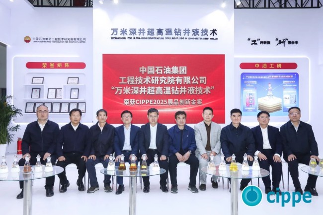 cippe2025展會現場,經由張來斌院士、李根生院士、柳貢慧教授等11位資深專家評審團嚴格評選,中國石油集團工程技術研究院有限公司的“萬米深井超高溫鉆井液技術”獲得本屆“cippe展品創新金獎”。第十四屆全國政協常委、中國工程院院士張來斌為cippe“展品創新金獎”獲獎單位頒獎。